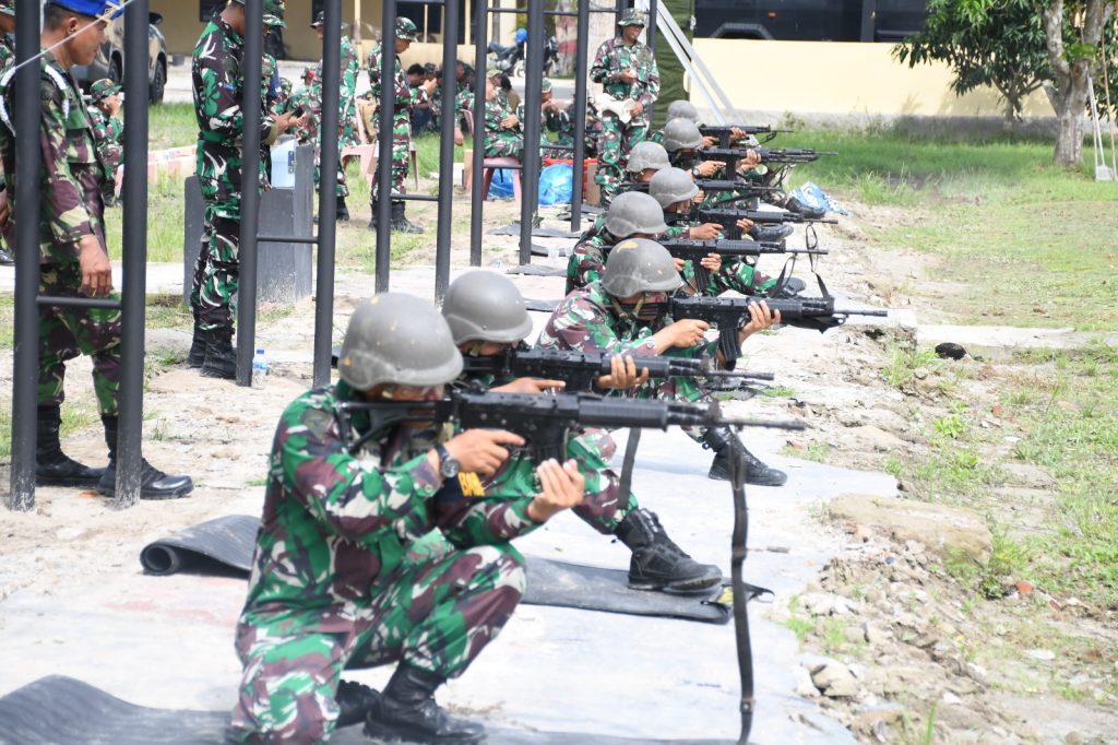 Pada latihan menembak dengan materi dari jarak 100 meter, menggunakan sikap tiarap, duduk dan berdiri tersebut prajurit dituntut ketangkasannya dalam menuntaskan materi sesuai instruksi yang diberikan pelatih dengan harapan tembakannya bisa maksimal. Dilanjutkan latihan menembak pistol jarak 25 meter.