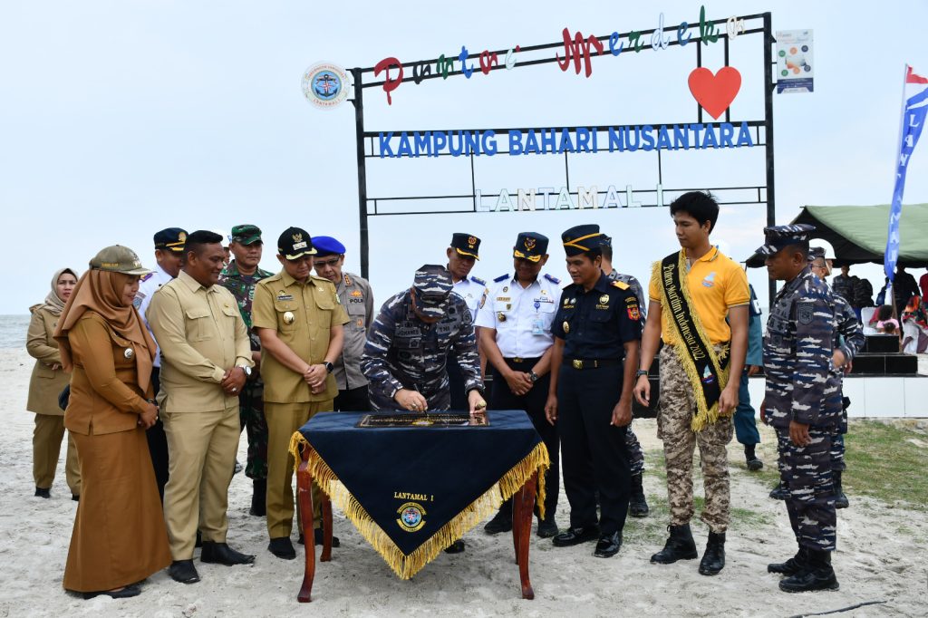 TNI AL, Belawan,- TNI Angkatan Laut Lantamal I Belawan turut serta dalam kegiatan peresmian Kampung Bahari Nusantara yang dilakukan secara terpusat dan serentak di 68 Satuan Komando Wilayah (Satkowil) TNI AL, termasuk di Desa Bagan Kuala, Serdang Bedagai,  Sumatera Utara, Senin