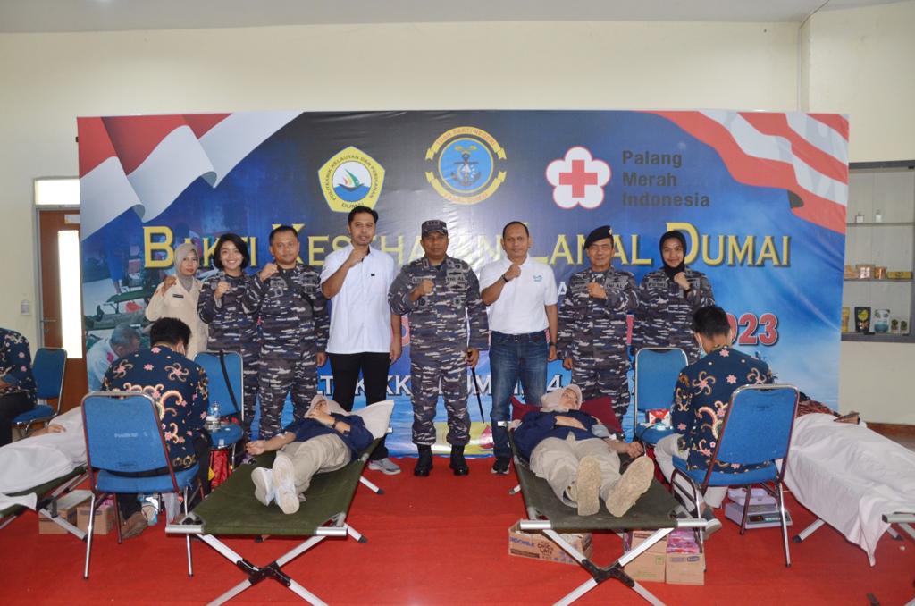 TNI AL, Dumai,- Pangkalan TNI Angkatan Laut Dumai melalui Balai Pengobatan Lanal Dumai bersama Palang Merah Indonesia (PMI) Kota Dumai menggelar Bakti Kesehatan dalam rangka memperingati Hari Donor Darah Sedunia Tahun 2023. Pelaksanaan kegiatan Bakti Kesehatan Donor Darah yang ditinjau langsung oleh Komandan Lanal Dumai Kolonel Laut (P) Stanley Lekahena, M.Tr. Hanla., di Kampus Politeknik Kelautan dan Perikanan Dumai, Jalan Wan Amir No.1, Pangkalan Sesai, Kecamatan Dumai Barat, Kota Dumai, Rabu (14/06/2023).