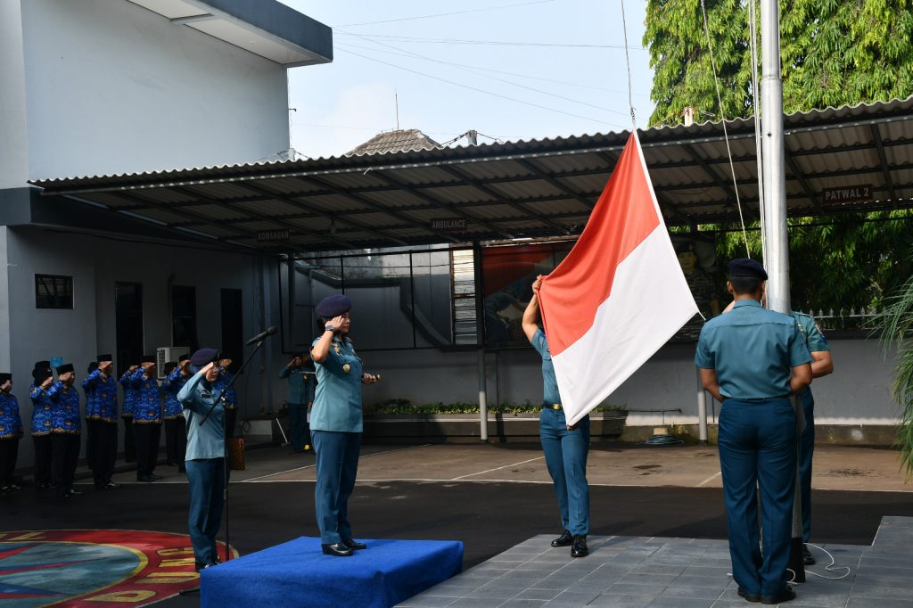 TNI AL, Bandung,– Komandan Pangkalan TNI Angkatan Laut (Lanal) Bandung Kolonel Laut (KH/W) Dr. Renny Setiowati, S.T., M.Sc., M.Tr.Hanla., memimpin Upacara Bendera Tujuh Belasan di Lapangan Apel Markas Komando (Mako) Lanal Bandung, Jalan Aria Jipang No. 8 , Kota Bandung, Senin (19/04/2023).