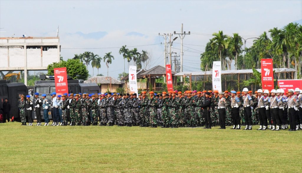 TNI AL, Belawan,- Komandan Pangkalan Utama Angkatan Laut (Danlantamal) I Laksamana Pertama TNI Johanes Djanarko Wibowo yang diwakili Wadan Lantamal I Kolonel Marinir Sudin Kaban menghadiri Upacara Hari Bhayangkara ke-77 Tahun 2023 dengan tema “Polri Presisi Untuk Negeri, Pemilu Damai Menuju Indonesia Emas”, bertempat di Lapangan Apel Mapolda Sumatera Utara, Jalan Sisingamangaraja KM 10,5 No. 60,Timbang Deli, Kecamatan Medan Amplas, Sumatera Utara, Sabtu (01/7/2023).
