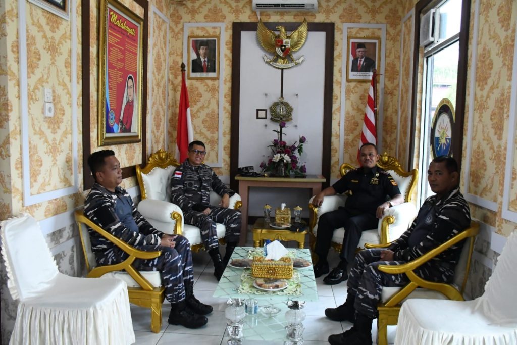 TNI AL, Tanjung Balai,- Komandan Pangkalan TNI AL Tanjung Balai Asahan Letkol Laut (P) Aan Prana Tuah Sebayang, S.E., D.W.C., didampingi Pasintel dan Pjs. Pasop menerima kunjungan Kepala Bea Cukai Teluk Nibung Nurhasan Ashari, S.E., M.M., di Mako Lanal Tanjung Balai Asahan, Rabu (5/7/2023).