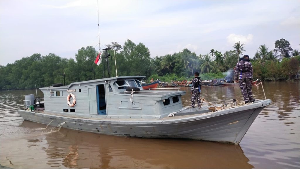 TNI AL, Dumai,- Kapal Patroli Lebang Pos TNI AL Bengkalis dan Babinpotmar Tanjung Buton melaksanakan evakuasi dan pengamanan terhadap KLM Jaya Mulia Sakti yang terbakar di Perairan Sungai Apit, Teluk Mesiid, Kecamatan Sungai Apit, Kabupaten Siak, Provinsi Riau pada koordinat 1°336,081″N 102°7’51,285 E, Sabtu (22/07/2023).