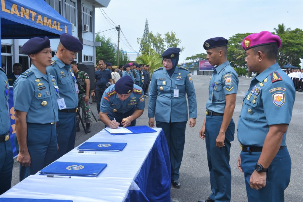 TNI AL, Belawan,- Komandan Pangkalan Utama TNI AL (Danlantamal) I Belawan Laksamana Pertama TNI Johanes Djanarko Wibowo yang diwakili Wadan Lantamal I Kolonel Marinir Sudin Kaban memimpin acara Penandatanganan Pakta Integritas Panitia Seleksi Penerimaan Calon Bintara (Caba) dan Calon Tamtama (Cata) Prajurit Karier (PK) TNI Angkatan Laut TA. 2023 , bertempat di Lapangan Apel Mako Lantamal I, Jalan Serma Hanafiah No. 01 Belawan, Sumatera Utara, Selasa (8/8/2023).