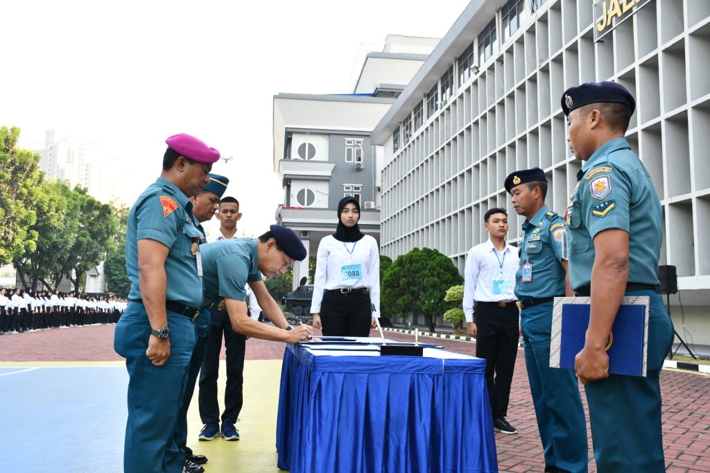 TNI AL-Dispenlantamal3. Komandan Pangkalan Utama TNI AL (Danlantamal) III Jakarta Brigjen TNI (Mar) Harry Indarto, S.E., M.M. selaku Ketua Panitia Daerah (Panda) Lantamal III Jakarta diwakili Asisten Personel (Aspers) Danlantamal III Jakarta Kolonel Laut (S) Agung Widodo, M.Tr.Hanla. selaku Sekretaris Panda Lantamal III Jakarta melaksanakan penandatanganan Pakta Integritas dan pengarahan kepada para calon Bintara (Caba) dan calon Tamtama (Cata) Prajurit Karier (PK) TNI Angkatan Laut TA 2023 bertempat di lapangan apel Mako Lantamal III Jakarta Jl. Gunung Sahari No. 2 Ancol, Jakarta Utara, Selasa (08/08/2023).