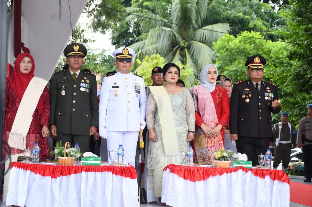 TNI AL, Tanjung Balai,- Komandan Lanal Tanjung Balai Asahan Letkol Laut (P) Aan Prana Tuah Sebayang, S.E., D.W.C., dan Ketua Cabang 7 Korcab I DJA I Ny. Elisa Aan Sebayang menghadiri Upacara Peringatan HUT Ke-78 Kemerdekaan Republik Indonesia Tahun 2023, bertempat di Lapangan Sultan Abdul Djalil Rahmadsyah, Kota Tanjungbalai, Kamis (17/08/2023).