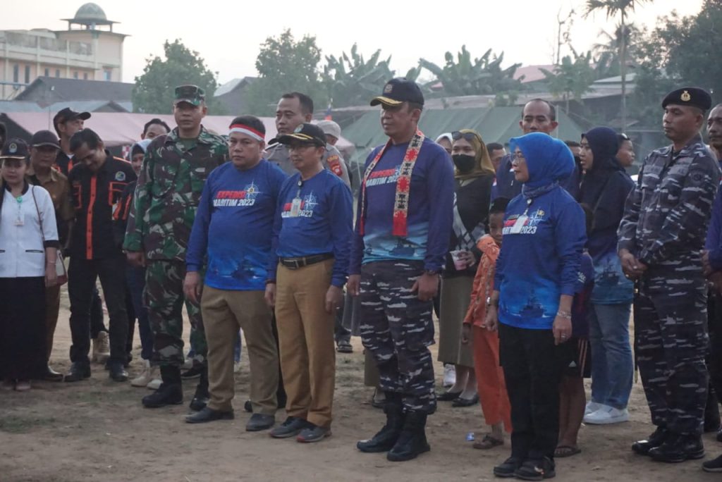 TNI AL, Lantamal XII,- Wadan Lantamal XII Kolonel Marinir Budiarso, S.E., selaku tertua Tim Expdisi Maritim 2023 Route Putih menerima sambutan dari Komandan Pangkalan TNI Angkatan Laut (Danlanal) Ketapang Letkol Laut (P) Ivan Halim, S.H., M.Tr.Hanla. dan Forkopimda Ketapang di Lapangan Sepak Bola Kecamatan Sandai, Senin (04/09/2023).
