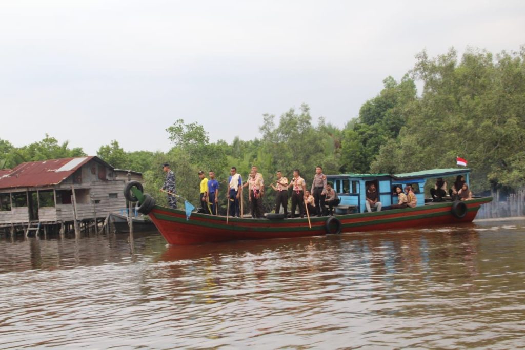 Kegiatan dilanjutkan peninjaun bersih-bersih kali/sungai di Perairan Sungai Dumai serta pembagian Sembako kepada masyarakat maritim setempat.