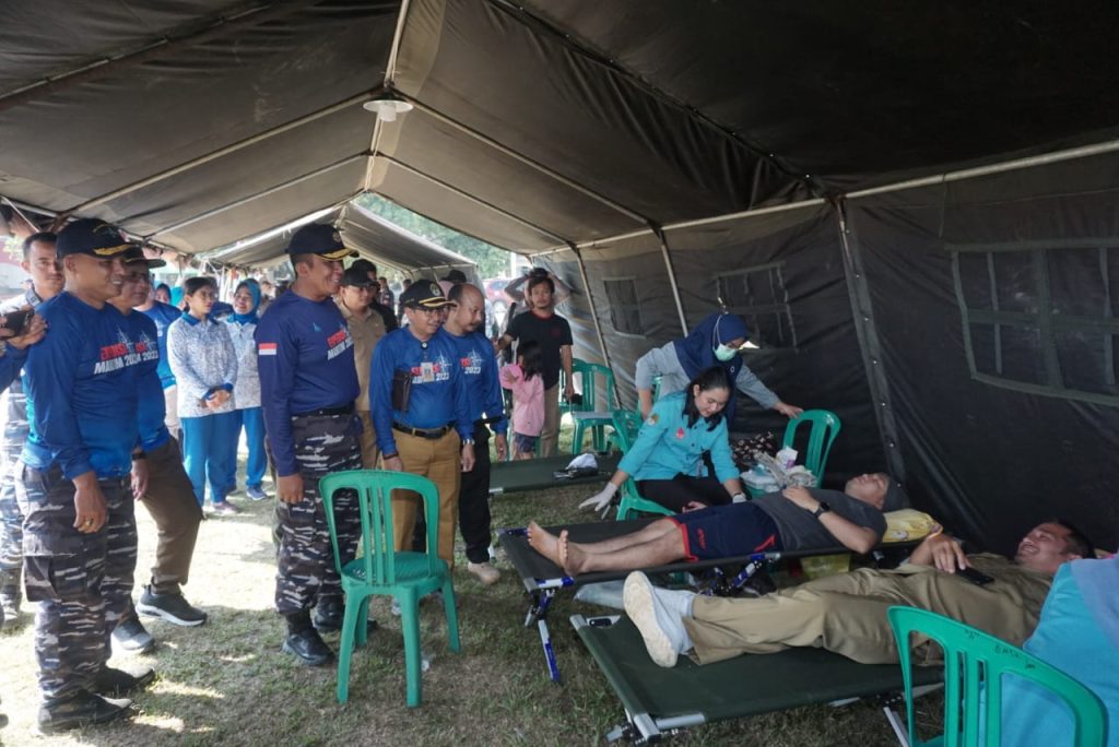 Sebelum melanjutkan perjalanan, Tim Expedisi Maritim meninjau Bakti Sosial yang dilaksanakan oleh Lanal Ketapang dan Lantamal XII untuk masyarakat Sandai berupa donor darah dan pembagian kacamata baca serta melaksanakan penanaman pohon.