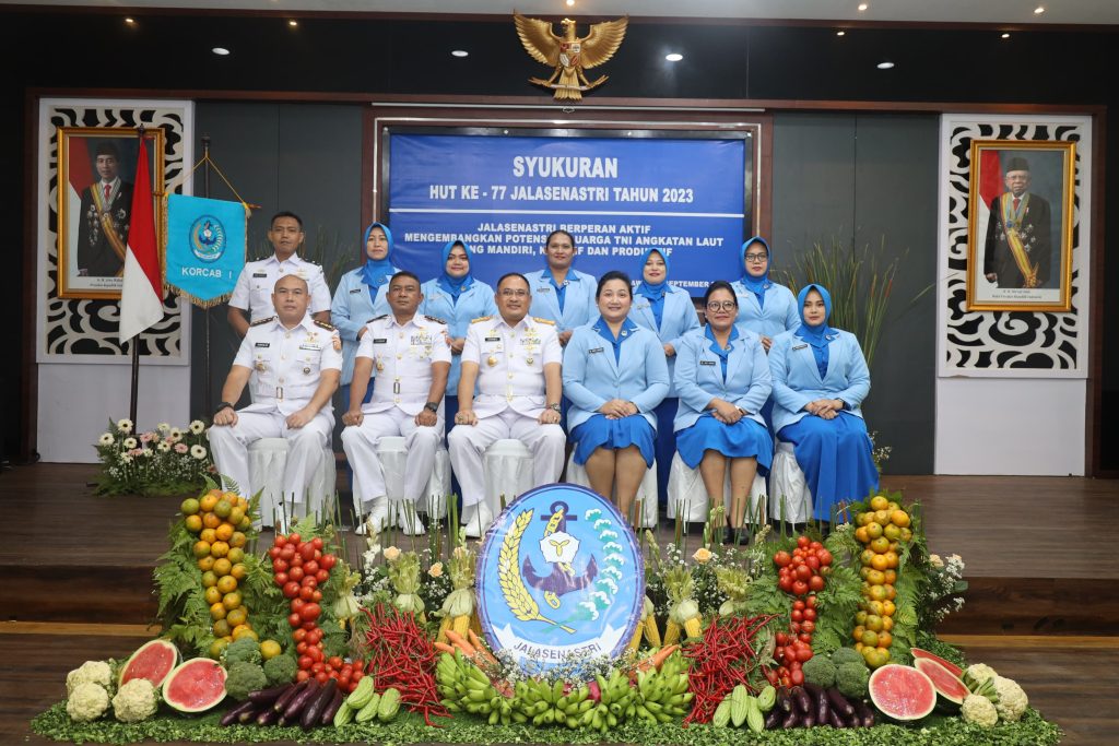 TNI AL, Belawan,- Komandan Pangkalan Utama TNI Angkatan Laut (Danlantamal) I Belawan didampingi Ketua Korcab I Daerah Jalasenastri Armada I Ny. Widi Johanes melaksanakan acara syukuran dalam rangka HUT ke-77 Jalasenastri Tahun 2023, bertempat di Gedung Yos Sudarso, Jalan Serma Hanafiah No. 01 Belawan, Sumatera Utara, Rabu (6/9/2023).