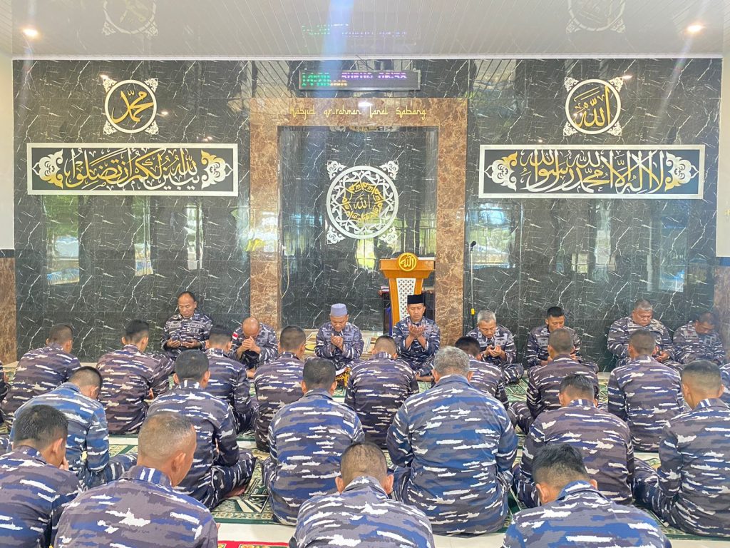 TNI AL, Sabang,- Menjelang Peringatan HUT Ke-78 TNI Angkatan Laut tanggal 10 September 2023 mendatang, Personel Lanal Sabang melaksanakan doa bersama yang mengangkat tema “Dengan Semangat Jalesveva Jayamahe, Kita Terus Melaju Untuk Indonesia Maju,” bertempat di Masjid Ar Rahman Mako Lanal Sabang, Jalan Yos Sudarso, Gampong Kuta Ateuh, Kecamatan Sukakarya, Kota Sabang, Jum’at (08/09/2023).