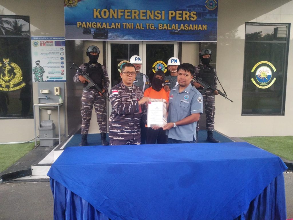 Sementara itu, Komandan Lanal Tanjung Balai Asahan Letkol Laut (P) Aan Prana Tuah Sebayang, S.E., D.W.C., mengatakan tertangkapnya penyelundup narkoba berawal saat Patkamla 1-1-46/ASN yang sedang melaksanakan patroli rutin di Perairan Kuala Bagan Asahan melihat kapal yang mencurigakan, selanjutnya dilaksanakan pengejaran dan penghentian terhadap kapal tersebut, dari hasil pemeriksaan diketahui bahwa kapal tersebut adalah KM. Nusantara Timur GT 5 jenis Kapal Ikan Tangkul Belacan yang dinakhodai oleh sdr. “MM” beserta 2 (dua) orang abk dan didapati 2 (dua) orang penumpang yang diduga PMI illegal. Setelah dilaksanakan penggeledahan ditemukan 7 (tujuh) bungkus barang yang diduga narkoba jenis sabu dan dikemas dalam kemasan teh china dengan warna berbeda, warna hitam 3 bungkus, kuning 3 bungkus dan hijau 1 bungkus dibalut plastik warna merah dengan berat keseluruhan ± 7.000 gram yang dibawa oleh penumpang berinisial “SA”.