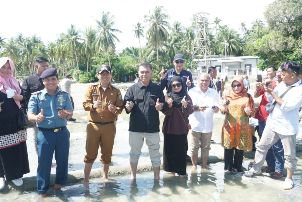 TNI AL, Lantamal XII,- Komandan Pos TNI Angkatan Laut (Danposal) Subi Letda Laut (P) Edi Sandra bersama Bupati Natuna Wan Siswandi didampingi Forum Koordinasi Pimpinan Daerah (Forkopimda) Natuna turut serta dalam pelepasan bibit penyu di Pulau Subi, Senin (18/09/2023).