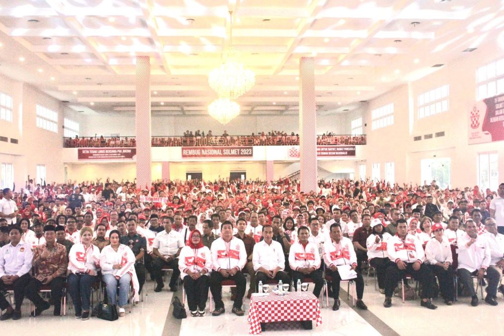 Sebelum Pembacaan Ikrar, Ketua Umum Solmet Silfester Matutina yang menjadi Tuan Rumah dan juga salah satu Inisiator Gerakan Setia Tegak Lurus Bersama Jokowi yang di deklarasikan di Jakarta tanggal 22-2-2022 dalam Sambutan Pidatonya didepan Presiden Jokowi dan Ribuan Peserta serta Tamu Undangan mengatakan “