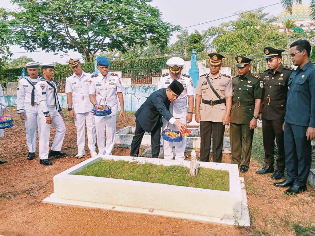 TNI AL, Bintan,- Dalam rangka memperingati Hari Ulang Tahun (HUT) Tentara Nasional Indonesia Ke-78 tahun 2023, Pangkalan TNI AL Bintan bersama unsur TNI lainnya, Polri, serta FKPD Bintan melaksanakan Upacara Ziarah Nasional dan Tabur Bunga di Taman Makam Pahlawan Dwikora Tanjung Uban, Kabupaten Bintan, Rabu (04/10/2023).