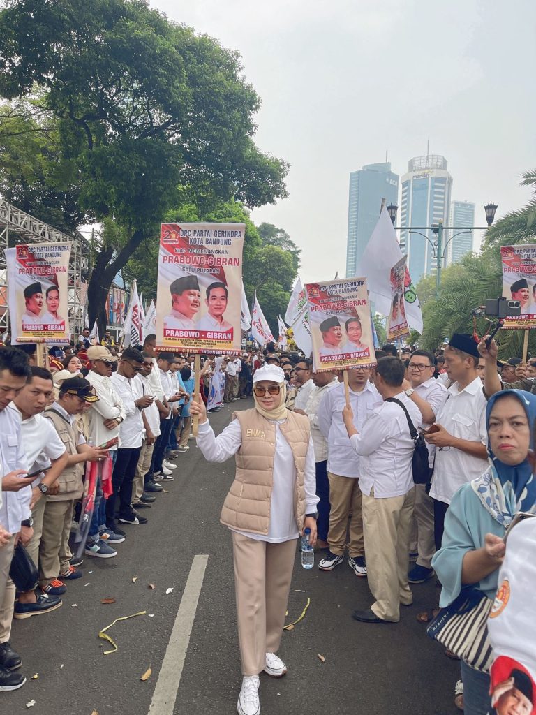 Hj. Emma Hernasari, S.H. S.E. M.M menjelaskan tentang pasangan Prabowo dan Gibran sebagai Capres dan Cawapres Pilpres 2024 sangatlah serasi serta luar biasa mantab, jelas Emma saat ditemui awak media disamping KPU.