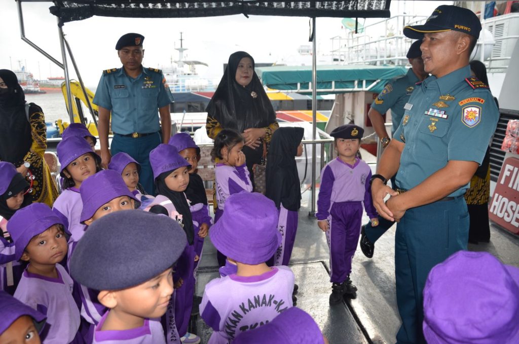 TNI AL, Dumai,- Komandan Pangkalan TNI AL Dumai Kolonel Laut (P) Kariady Bangun diwakili oleh Palaksa Letkol Laut (PM) Priatno, S.H., M.H., menerima kunjungan dari TK Negeri I Sungai Sembilan Dumai berjumlah 30 siswa.