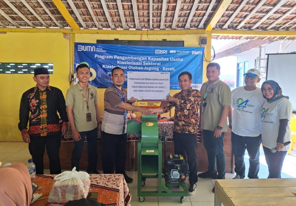Dari hasil panen jagung yang melimpah ini, menyisakan sampah organik berupa tongkol jagung yang dibuang atau hanya dibakar. Hal ini menjadi dasar bagi Bapak Budianto selaku Pimpinan PNM Cabang Bojonegoro untuk memberikan pelatihan pembuatan pakan dan suplemen ternak dari limbah jagung. Tidak hanya sekedar pelatihan, tapi Bapak Budianto juga hadir secara langsung dan menyerahkan hibah dari PNM berupa mesin pencacah multi fungsi yang bisa digunakan untuk membuat pakan ternak berbahan tongkol jagung dan tebon jagung.