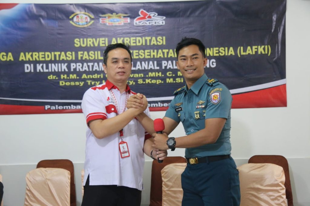 Dalam giat tersebut, Ketua Tim Surveyor dr. H.M. Andri Gunawan, M.H., C.Med., mengatakan bahwa kedatangan dirinya ke BK Lanal Palembang dalam hal ini guna melakukan Survei Akreditasi Fasilitas Kesehatan Tingkat Pertama (FKTP).