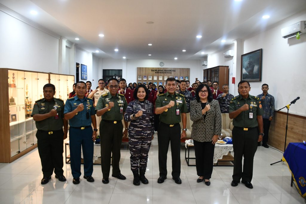 TNI AL, Bandung,- Komandan Lanal Bandung Kolonel Laut (KH/W) Dr. Renny Setiowati, S.T., M.Sc., M.Tr.Hanla., menerima kunjungan Mahasiswa Universitas Pertahanan (Unhan) RI dengan materi Program Studi Keamanan Nasional dalam rangka Pengenalan Mahasiswa guna memberikan pengetahuan keilmuan sesuai bidang yang ditempuh, bertempat di Aula Mako Lanal Bandung, Jalan Aria Jipang No. 8, Kota Bandung, Jum’at (24/11/2023).