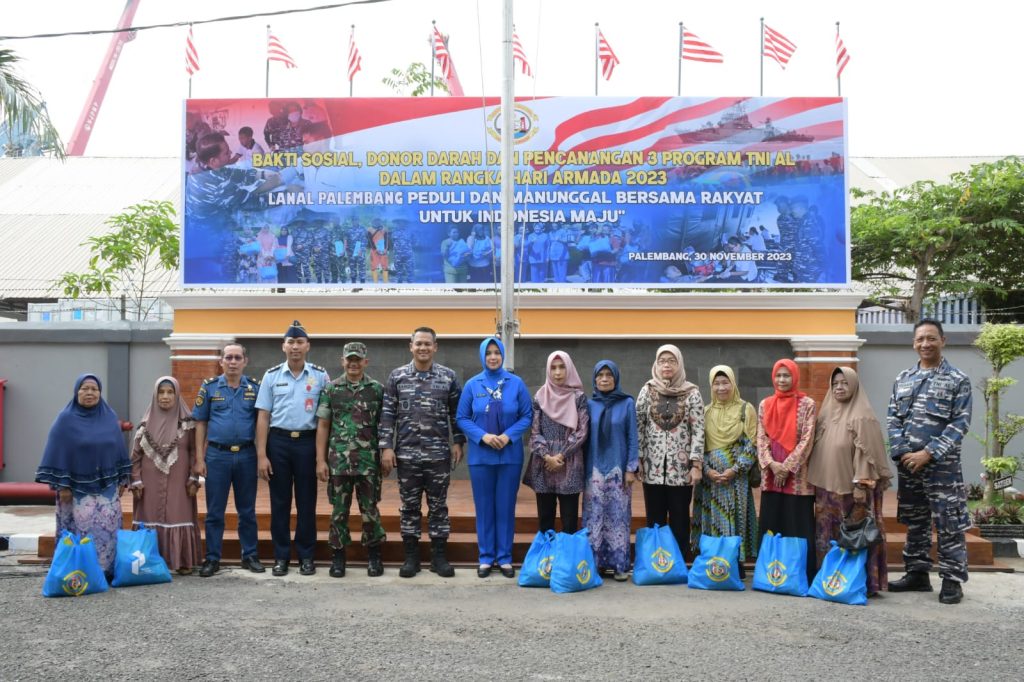 TNI AL, Palembang,- Peringati HUT Armada RI Tahun 2023, Pangkalan TNI Angkatan Laut (Lanal) Palembang gelar kegiatan Bhakti Sosial dan Donor Darah serta Pencanangan 3 Program TNI Angkatan Laut, bertempat di Lapangan Apel Mako Lanal Palembang, Kamis (30/11/2023).