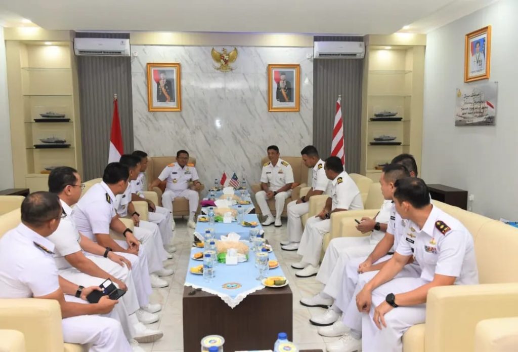 TNI AL, Belawan,- Komandan Pangkalan Utama TNI AL I (Danlantamal) I Laksamana Pertama TNI Dores Afrianto Ardi, S.E., M.Si., M.Han., CHRMP., menerima kunjungan CTG TLDM Captain Saharudin bin Bongsu bersama Komandan Kapal Perang Malaysia CO KD Laksamana Tun Abdul Jamil F-135 Commander Megat Mohamad Sofwan Firdaus bin Megat Mohamad Yunus, dan CO KD Jerai-12 Lieutenant Commander Mohamad Amar bin Ahmad, beserta rombongan, bertempat di Vip Room Mako Lantamal I, Jalan Serma Hanafiah No. 01 Belawan, Sumatera Utara, Jumat (08/12/2023).