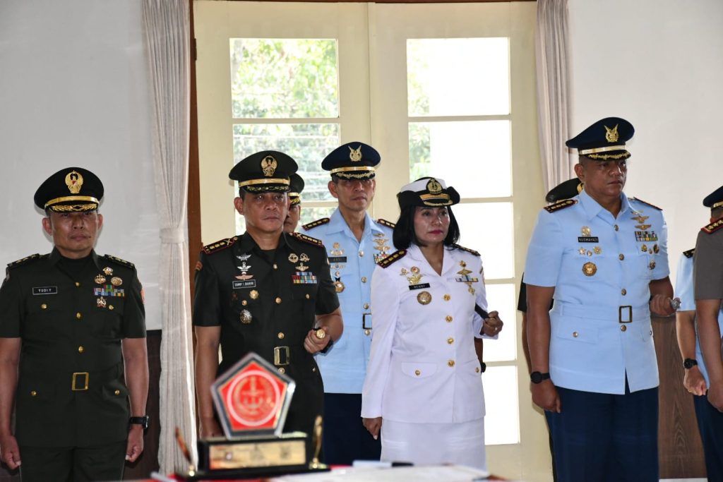 TNI AL, Bandung,– Komandan Lanal Bandung Kolonel Laut (KH/W) Dr. Renny Setiowati, S.T., M.Sc., M.Tr.Hanla., menghadiri acara Serah Terima Jabatan dan Pisah Sambut Kaskogartap II/Bandung dari Marsekal Pertama TNI Yudi Bustami, S.Sos., kepada Marsekal Pertama TNI Tri Wibowo, C.S., Sos., M.M., bertindak selaku Irup Dangartap II/Bandung Mayjen TNI Erwin Djatniko, bertempat di Aula Mako Kogartap II/Bandung, Jalan Nias No. 3 Babakan Ciamis, Kecamatan Sumur, Kota Bandung, Kamis (14/12/2023).