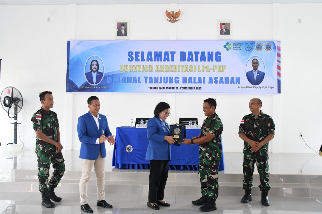 TNI AL, Tanjung Balai,- Komandan Lanal Tanjung Balai Asahan Letkol Laut (P) Wido Dwi Nugraha, S.E., M.Tr. Opsla., menutup kegiatan Survei Akreditasi Balai Pengobatan (BP) Lanal Tanjung Balai Asahan dari Lembaga Penyelenggara Akreditasi Pelayanan Kesehatan Paripurna (LPA-PKP) oleh Ketua Surveior Elfridawati Sinulingga, S.Kep., MKM., dan Letkol Laut (K) dr. Agung Malinda Wijaya, Sp.OT., di Mako Lanal Tanjung Balai Asahan, Jalan Tanjung Berombang, Asahan Mati, Kecamatan Tanjungbalai, Kabupaten Asahan, Jumat (22/12/2023).