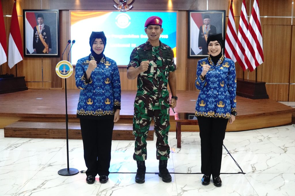 TNI AL-Dispenlantamal3. Komandan Pangkalan Utama TNI Angkatan Laut (Danlantamal) III Jakarta Brigjen TNI (Mar) Harry Indarto, S.E., M.M. diwakili Komandan Detasemen Markas (Dandenma) Lantamal III Jakarta Letkol Marinir Ahmad Supriyadi, M.Tr.Opsla. melaksanakan pelantikan dan pengambilan sumpah Pegawai Negeri Sipil (PNS) di lingkungan Lantamal III Jakarta bertempat di gedung serbaguna (GSG) Mako Lantamal III Jakarta Jl. Gunung Sahari No. 2 Ancol, Jakarta Utara, Jumat (22/12/2023).