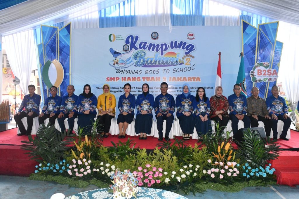Ketua Pembina Yayasan Hang Tuah Ny. Fera Muhammad Ali dalam sambutannya mengatakan “Acara Kampung Bahari session 2 Bapanas Goes to School di SMP Hang Tuah 2 Jakarta tahun 2024 dengan tema “Melalui Hari Ulang Tahun ke-77 Yayasan Hang Tuah Berkomitmen Membentuk Generasi Emas yang Unggul Berjiwa Bahari Melalui Program Pembelajaran Pola Konsumsi Pangan yang Beragam, Bergizi Seimbang dan Aman”. Pembinaan menuju terbentuknya perilaku hidup sehat merupakan bagian terpenting dari pembinaan kesehatan anak usia sekolah yang merupakan kelompok rawan karena berada dalam masa pertumbuhan dan perkembangan, sehingga peluang pada masa perkembangan anak sangat berharga dan merupakan peletak dasar bagi perkembangan selanjutnya. Hal ini sejalan dengan tugas seorang pendidik di sekolah harus memperhatikan pertumbuhan dan perkembangan peserta didik, salah satunya dengan memperhatikan dan mengontrol makanan yang dikonsumsi oleh anak-anak. Untuk mendapatkan tubuh yang sehat dan kuat diperlukan makanan yang bergizi, olahraga, dan istirahat yang cukup”.