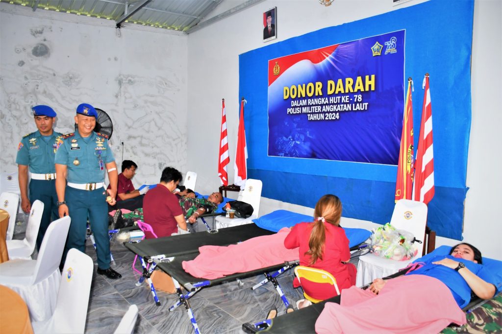 TNI AL, Belawan,- Polisi Militer Angkatan Laut (Pomal) Lantamal I melaksanakan kegiatan bakti sosial donor darah yang dilaksanakan secara serentak seluruh Jajaran TNI AL, dipimpin oleh Danpuspomal Laksamana Muda TNI Samista, S.H., melalui vicon, bertempat di Aula Widhayaka Pomal Lantamal I, Jalan Kapten Raden Sulian, No.01 Belawan, Sumatera Utara, Selasa (23/01/2024).