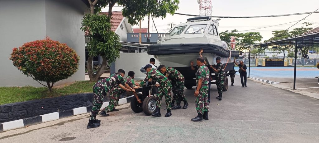 TNI AL, Banjarmasin,- Guna meningkatkan Patroli dan Pengawasan, Pangkalan TNI AL (Lanal) Banjarmasin menerima RBB (Rigid Buoyancy Boat) Trimaran 6 Meter, pada Selasa (30/01/2024).