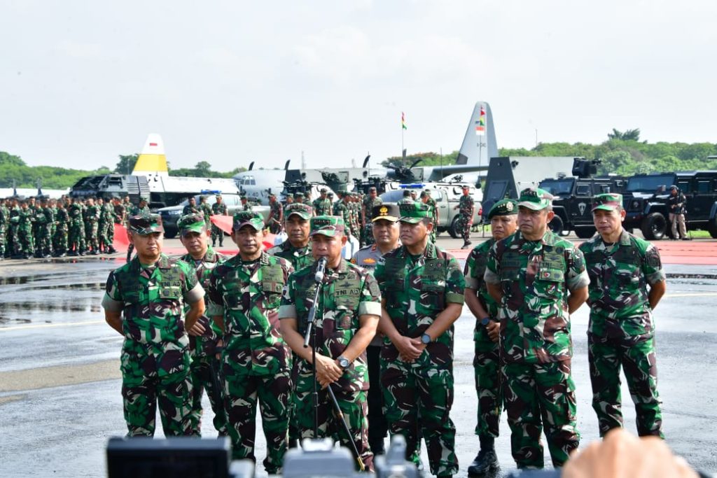 Panglima TNI pada saat konferensi pers mengatakan “Baru saja saya dan seluruh Kepala Staf Angkatan mengecek kesiapan personel dan alat perlengkapannya dalam rangka menghadapi pengamanan Pemilu tahun 2024. Selain kita mengecek kesiapan pengamanan Pemilu juga mengecek kesiapan personel dan alat perlengkapan dalam rangka menghadapi bencana alam. Kita ketahui bahwa ada beberapa bencana alam di wilayah kita dan pasukan TNI dan elemen masyarakat lainnya sudah melaksanakan perbantuan, seperti bencana alam erupsi Gunung Merapi di Jawa Tengah, Gunung Lewotobi di Nusa Tenggara Timur, bencana banjir di wilayah Medan dan Sumatera Selatan”.
