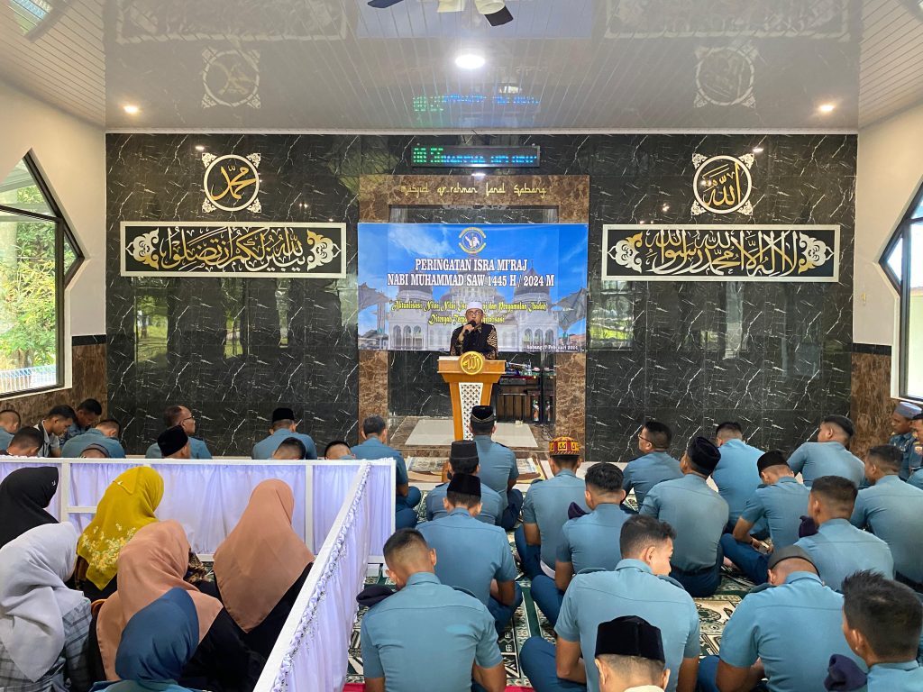 TNI AL, Sabang,- Satuan TNI Angkatan Laut Wilayah Sabang memperingati Isra’ Mi’raj Nabi Muhammad SAW 1445 H/2024 M, dengan mengangkat tema ”Aktualisasi nilai nilai Isra’ Mi’raj dan pengamalan ibadah ditengah terpaan digitalisasi”, bertempat di Masjid Ar Rahman Mako Lanal Sabang, Jalan Yos Sudarso, Gampong Kuta Ateuh, Kecamatan Sukakarya, Kota Sabang, Rabu (7/2/2024).