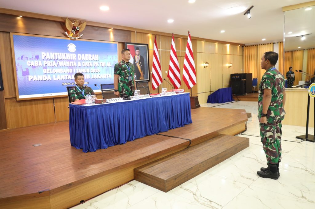 TNI AL-Dispenlantamal3. Komandan Pangkalan Utama TNI Angkatan Laut (Danlantamal) III Jakarta Brigjen TNI (Mar) Harry Indarto, S.E., M.M. selaku Ketua Panitia Daerah (Panda) Lantamal III Jakarta memimpin Sidang Komisi Pemantauan Akhir (Pantukhir) Daerah calon Bintara (Caba) dan calon Tamtama (Cata) prajurit karier (PK) TNI Angkatan Laut gelombang I TA 2024 bertempat di gedung serbaguna (GSG) Mako Lantamal III Jakarta Jl. Gunung Sahari No. 2 Ancol, Jakarta Utara, Selasa (13/02/2024).