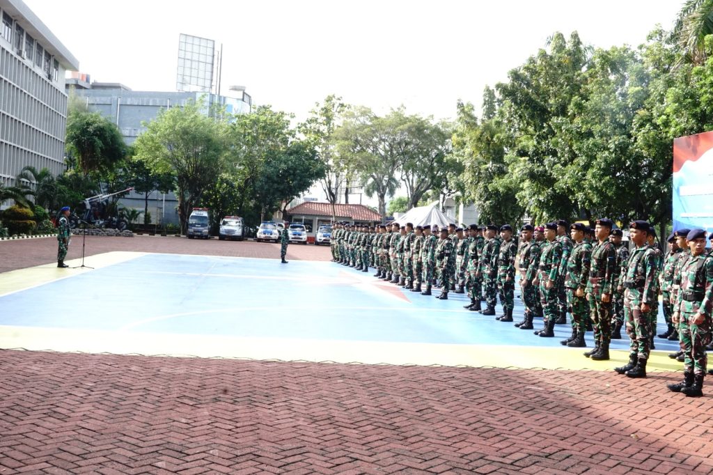 TNI AL-Dispenlantamal3. Komandan Pangkalan Utama TNI Angkatan Laut (Danlantamal) III Jakarta Brigjen TNI (Mar) Harry Indarto, S.E., M.M. diwakili Komandan Detasemen Markas (Dandenma) Lantamal III Jakarta Letkol Marinir Ahmad Supriyadi, M.Tr.Opsla. melaksanakan apel kesiapan pasukan penanggulangan huru hara (PHH) dalam rangka pengamanan pemilihan umum (Pemilu) tahun 2024 bertempat di lapangan apel Mako Lantamal III Jakarta Jl. Gunung Sahari No. 2 Ancol, Jakarta Utara, Selasa (13/02/2024).