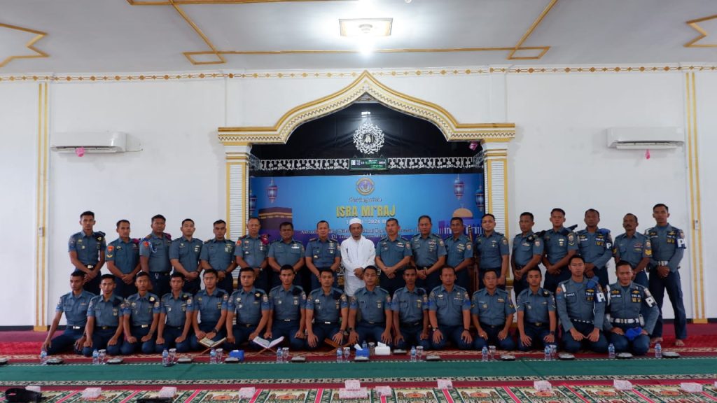 TNI AL, Lhokseumawe,– Pangkalan TNI Angkatan Laut (Lanal) Lhokseumawe memperingati Isra’ Mi’raj Nabi Muhammad SAW 1445 Hijriah/2024 Masehi dengan tema “Aktualisasi nilai-nilai Isra Mi’raj dan pengamalan ibadah ditengah terpaan digitalisasi”, bertempat di Masjid Al-Muttaqin Mako Lanal Lhokseumawe, Senin (19/02/2024).