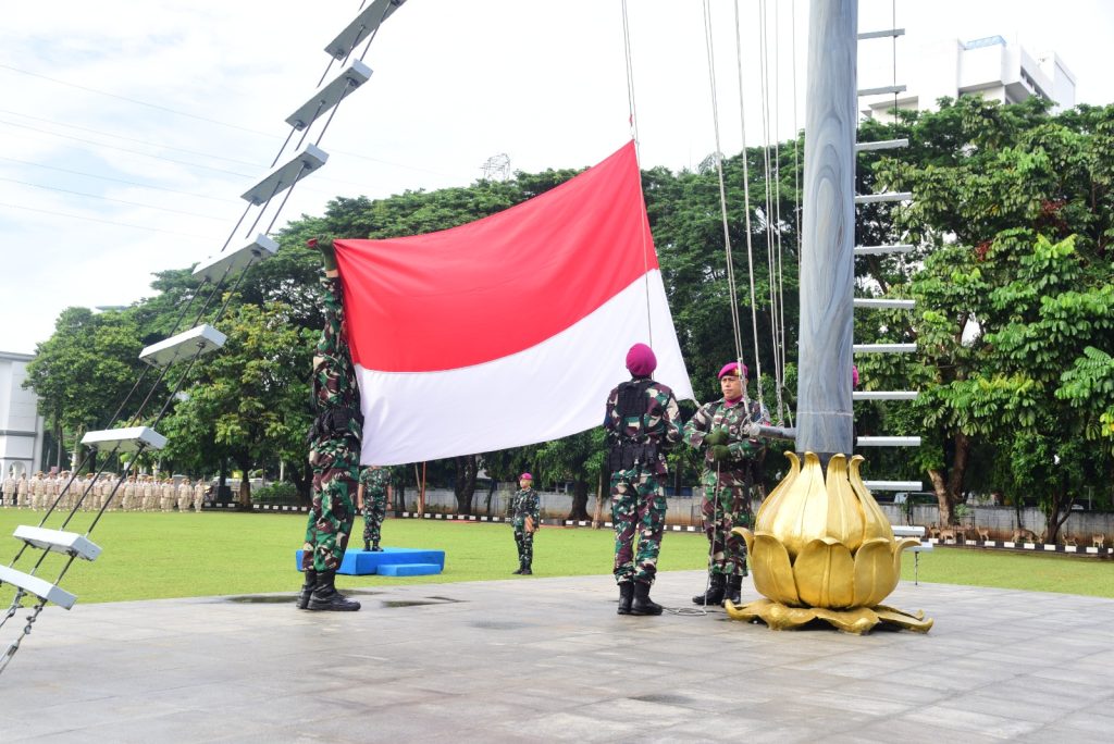 Segenap Prajurit dan PNS Markas Komando Korps Marinir (Mako Kormar) melaksanakan Upacara bendera rutin hari Senin yang dipimpin langsung oleh Kepala Dinas Informasi dan Pengolahan Data (Kadisinfolahta) Mako Kormar Kolonel Marinir Bambang Adriantoro., M.M., di Lapangan Hijau Kesatrian Mako Kormar Jl. Prajurit KKO Usman dan Harun No 40 Jakarta Pusat. Senin (26/02/2024).