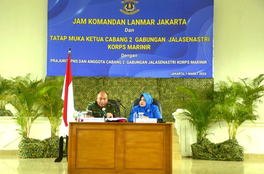 Komandan Pangkalan Korps Marinir Jakarta (Danlanmar Jakarta) Kolonel Marinir Imron Safei, S.E., M.Tr.Hanla, M.M. dan Ibu Ketua Cabang 2 Gabungan Jalasenastri Korps Marinir Ibu Ina Imron Safei menyampaikan hal-hal penting kepada seluruh prajurit, PNS dan anggota Cabang 2 Jalasenastri Lanmar Jakarta diantaranya agar seluruh prajurit, PNS dan Keluarga Lanmar Jakarta selalu menjaga keamanan diri pribadi hingga nama baik Satuan, selalu menjauhkan diri dari berbagai jenis pelanggaran yang berujung pada kerugian, baik pribadi maupun institusi, lebih mawas diri dan bijak untuk mengambil tindakan sehingga tidak terjadi hal-hal yang dapat merugikan nama baik Satuan maupun Korps Marinir.