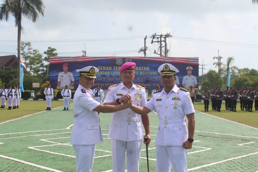 TNI AL-Dispenlantamal3. Komandan Pangkalan Utama TNI Angkatan Laut (Danlantamal) III Jakarta Brigjen TNI (Mar) Harry Indarto, S.E., M.M. memimpin serah terima jabatan (Sertijab) Komandan Pangkalan TNI Angkatan Laut (Danlanal) Bangka Belitung (Babel) dari Kolonel Laut (P) Deni Indra, M.Sos., M.Tr.Hanla., M.M. kepada Kolonel Laut (P) Erwin Herdianto, M.Tr.Hanla., M.M. yang dihadiri Pj. Gubernur Provinsi Bangka Belitung Dr. Safrizal Zakaria Ali, M.Si. dan Ketua Korcab III DJA I Ny. Neneng Harry Indarto bertempat di halaman kantor Gubernur Provinsi Kepulauan Bangka Belitung, Senin (04/03/2024).