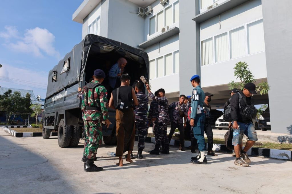 TNI AL, Dumai,- Sebanyak 40 orang PMI (Pekerja Migran Indonesia) Non Prosedural berhasil diamankan oleh Tim Gabungan F1QR Lanal Dumai dan Satgas Opsintelmar Koarmada I, di Pantai Pelintung, Kecamatan Medang Kampai, Kota Dumai Provinsi Riau, tepatnya pada titik koordinat 1°39’36.7″N 101°39’32.4″E, Rabu (06/03/2024).