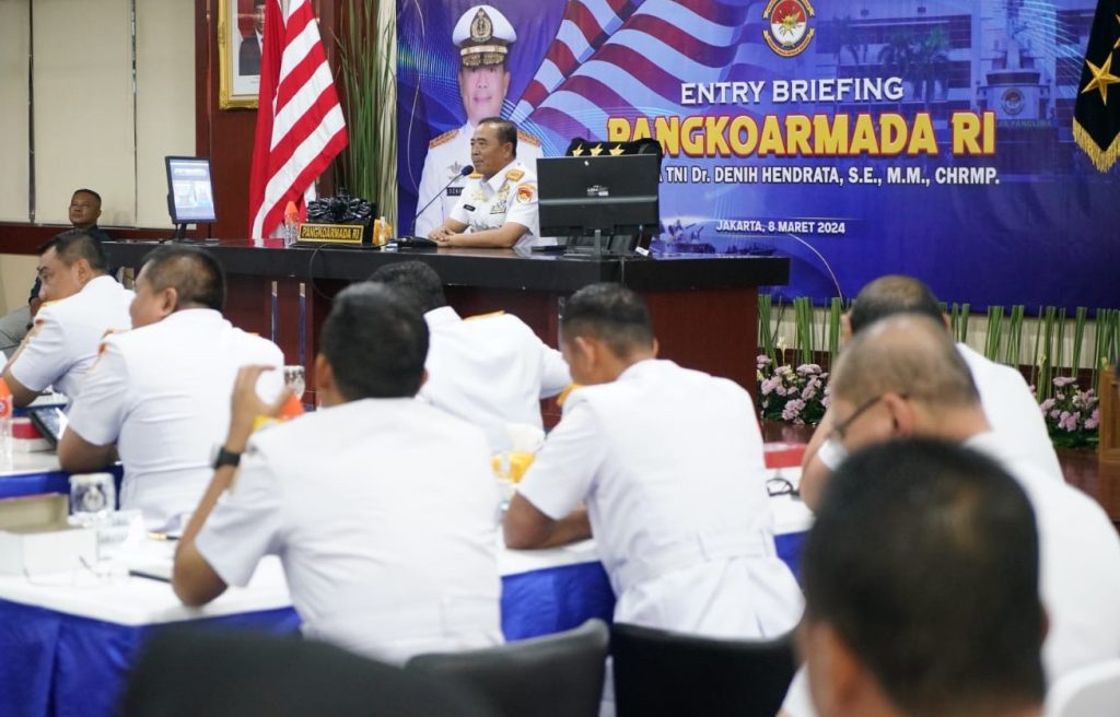 TNI Angkatan Laut, Koarmada RI, Jakarta 8 Maret 2024 – Tindak lanjut dari Rapim TNI dan TNI AL, Komando Armada Republik Indonesia (Koarmada RI) melaksanakan Rapat Staf dan Komando (Rasko) Koarmada RI tahun 2024, yang dipimpin Panglima Koarmada RI Laksamana Madya TNI Dr. Denih Hendrata, S.E., M.M., CHRMP. di Ruang Matjan Kumbang Koarmada RI, Jakarta Pusat, Jumat 8 Maret 2024. Rasko ini dilaksanakan secara tatap muka dan video converence (vicon).