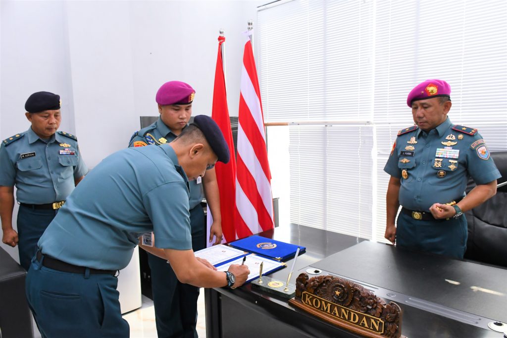 TNI AL, Belawan,- Komandan Pangkalan Utama TNI Angkatan Laut I (Danlantamal I) Brigjen TNI (Mar) Jasiman Purba, S.E., CHRMP., memimpin acara Penyerahan Jabatan Kafasharkan Lantamal I dan Kadisang Lantamal I dari Letkol Laut (T) Agus Gunardi dan Letkol Laut (T) Akhmad Yani Meyansyah kepada Komandan Lantamal I, bertempat di Ruang Kerja Komandan Lantamal I, Jalan Serma Hanafiah No. 01 Belawan, Sumatera Utara, Rabu (20/3/2024).
