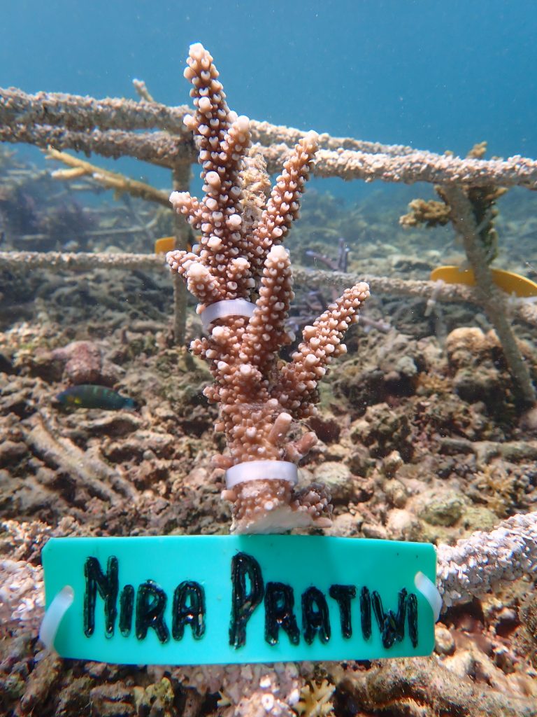 “Sebagai contoh Februari lalu kami melaksanakan program ini dan disambut baik oleh Masyarakat. Fragmen atau bibit karang tidak diambil dari alam, melainkan dari area pembibitan/nursery yang telah disiapkan oleh pengelola kawasan dan kelompok masyarakat sejak tahun 2014. Pembibitan dilakukan di meja beton sebagai media penempelan. Karang transpalantasi (F0) pada area ini telah tumbuh besar dan akan menjadi penyedia bibit untuk program adopsi karang,” terang Imam.