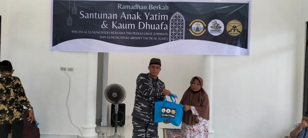 TNI AL, Teluk Dalam,- Peduli Anak Yatim dan Kaum Dhuafa, Posal Gunungsitoli Lanal Nias bekerja sama dengan organisasi TPU (Tim Peduli Umat) dan Gast (Gunungsitoli Airsoft Tactical) mengadakan kegiatan Ramadhan Berkah (Santunan Anak Yatim dan Kaum Dhuafa) di Mushola As Syuhada Pos TNI AL Gunungsitoli, Jumat (22/3/2024).