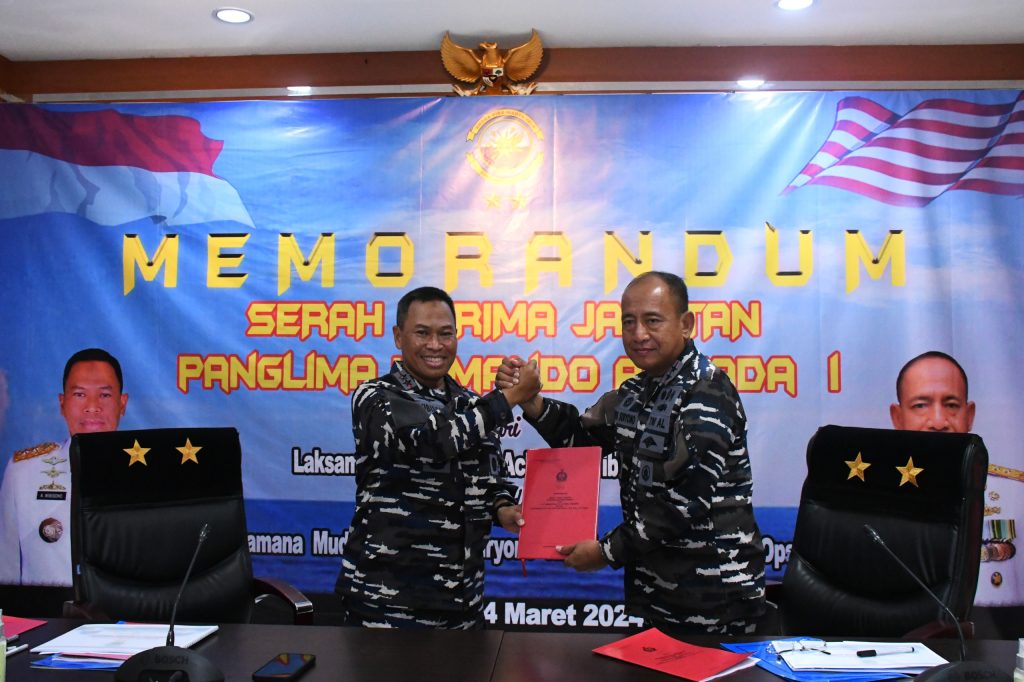 TNI AL, Belawan,- Komandan Pangkalan Utama TNI Angkatan Laut I (Danlantamal I) Brigjen TNI (Mar) Jasiman Purba, S.E., CHRMP., menghadiri acara Admiral Inspection dan Pembacaan Memorandum Serah Terima Jabatan (Sertijab) Panglima Komando Armada (Pangkoarmada) I dari Laksda TNI Achmad Wibisono, S.E., CHMRP., kepada Laksda TNI Yoos Suryono Hadi, M.Tr.(Han)., M.Tr.Opsla., CHRMP., bertempat di ruang TFG Satkor Koarmada I Kesatrian Pondok Dayung, Jakarta Utara, Minggu (24/3/2024).