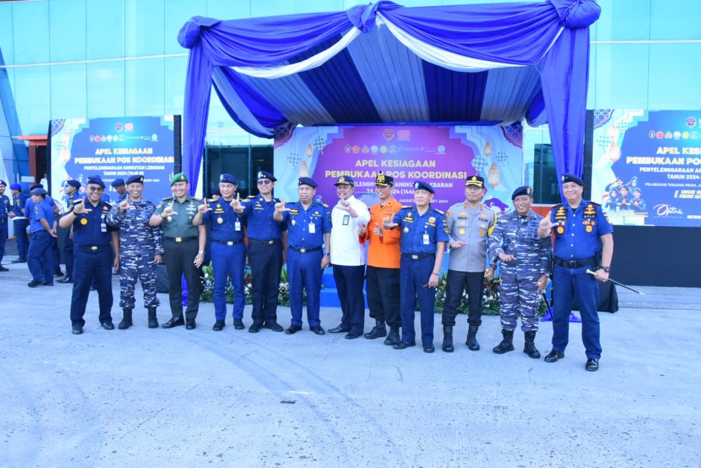 TNI AL-Dispenlantamal3. Komandan Pangkalan Utama TNI Angkatan Laut (Danlantamal) III Jakarta Brigjen TNI (Mar) Harry Indarto, S.E., M.M. diwakili Asisten Operasi (Asops) Danlantamal III Jakarta Kolonel Laut (P) Puryanto menghadiri apel kesiagaan pembukaan pos koordinasi (Posko) penyelenggaraan angkutan laut lebaran tahun 2024 (1445 H) dengan inspektur apel Direktur Jenderal Perhubungan Laut Kementerian Perhubungan (Dirjen Hubla Kemenhub) Dr. Capt. Antoni Arif Priadi, M.Sc. bertempat di dermaga Terminal Penumpang Nusantara Tanjung Priok, Jakarta Utara, Senin (25/03/2024).