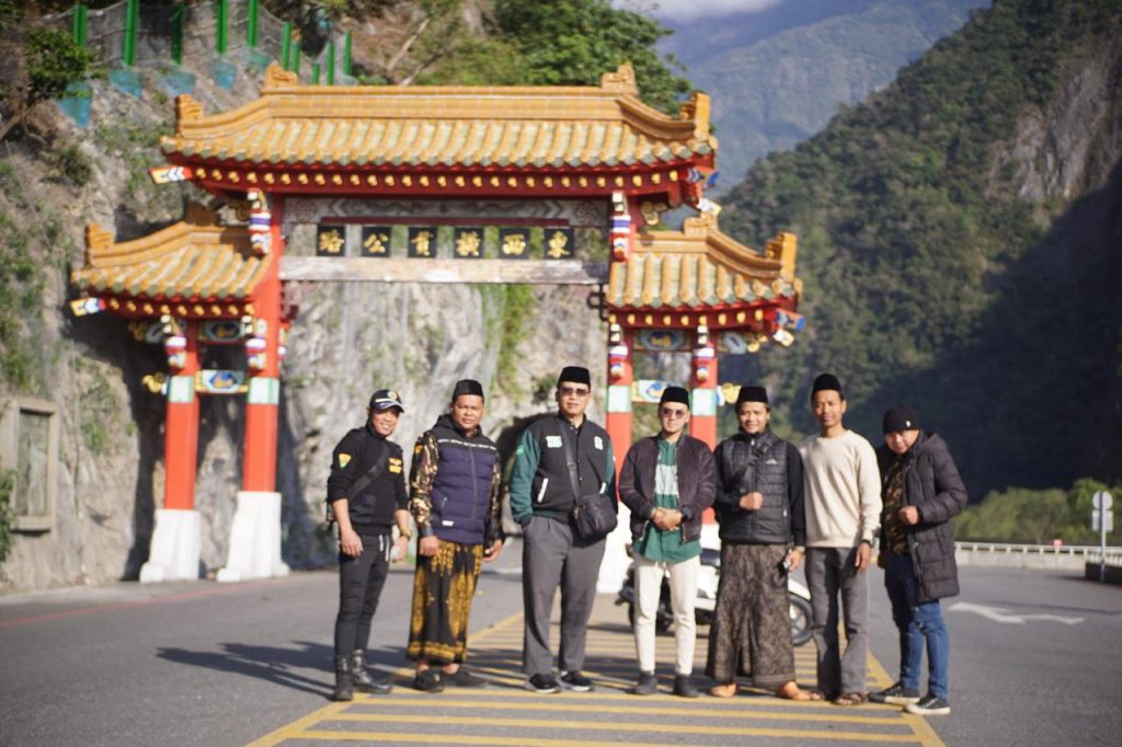 Wiridan doa, selepas subuh saya mencoba mwrehatkan badan lagi, dan jam 07.30 saya dibangunkan oleh mas Kholis untuk siap-siap karena akan diajak tadabur alam ke Tarokan, saya dan rombongab berdelapan berangkat dengan tour guide mas pamungkas sekaligus dia juga sebagai fotografer tunggal, dia PMI dan sudah fasih berbahasa mandarin, jarak tempuh dari tempat awal ke lokasi sekitar 45 menit, dalam perjalanan awal saya disuguhkan pemandangan rumah hunian warga Hualien yang cukup sederhana bersih tertata, kemudian setelah melewati hunian ada pabrik, kampus, dan tibalah saatnya saya disuguhkan oleh pemandangan alam yang sangat eksotik berupa tebing-tebing tinggi menjulang dengan pahatan indah dibalut warna marmer kanan kiri jalan membius saya dan rombongan dan berucap subhanallou, langsung hati dan fikiran saya teringat ayat Alloh, Sesungguhnya Kami telah menghiasi langit dunia (yang terdekat) dengan hiasan.”