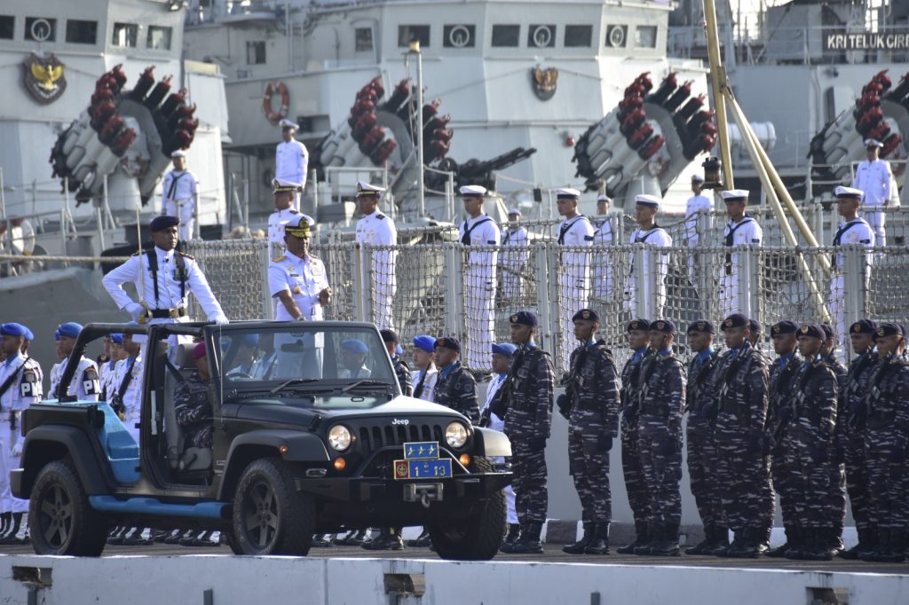 Dispen Kormar, TNI Angkatan Laut (Jakarta). Komandan Korps Marinir (Dankormar) Mayor Jenderal TNI (Mar) Endi Supardi, S.E., M.M., M.Tr.Opsla., CHRMP., CRMP., hadiri Upacara Serah Terima Jabatan (Sertijab) Panglima Komando Armada (Pangkoarmada) I yang dipimpin langsung oleh Panglima Komando Armada Republik Indonesia (Pangkoarmada RI) Laksamana Madya TNI Dr. Denih Hendrata, S.E., M.M., CHRMP., yang dilaksanakan di Dermaga Sunda Komplek Satuan Kapal Koarmada I Pondok Dayung Jakarta Utara, Senin (25/03/2024).