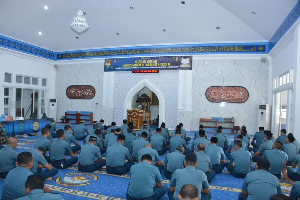 Jakarta, TNI AL, Koarmada RI, 1 April 2024-Komando Armada Republik Indonesia (Koarmada RI) menyelenggarakan peringatan Nuzulul Qur’an 1445 H yang dihadiri seluruh Pejabat Utama, Kasatker, prajurit dan PNS Koarmada RI serta Pengurus Gabungan Jalasenastri Armada RI yang dilaksanakan di Mesjid Al Muttaqin, Mako Koarmada RI, Senin, (1/04).